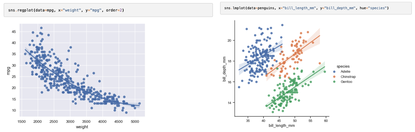 Regplot et lmplot : régressions