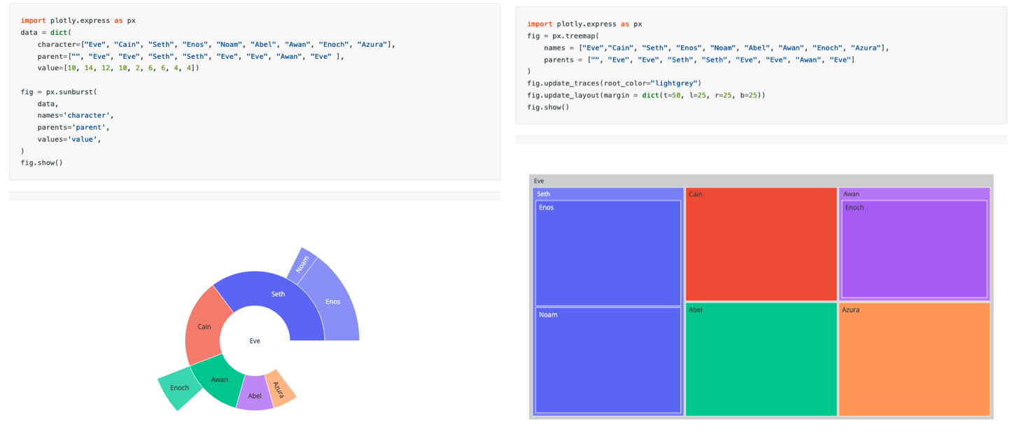 Sunburst et Treemap : hiérarchies